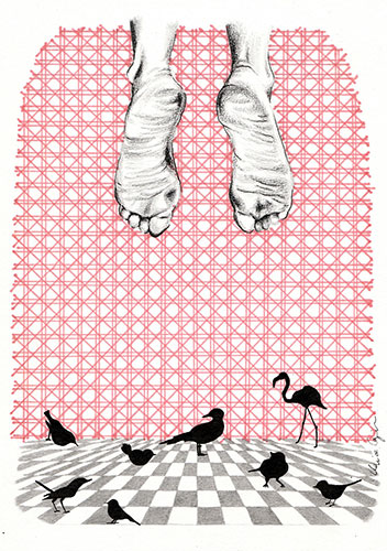 o quadril flutuante o silêncio das pernas os pés numa cauda só à revelia das águas de algodão